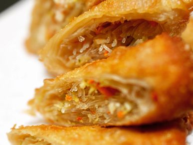 Egg Rolls stuffed with Mixed Vegetables and Jelly Noodles and then deep-fried to Golden Brown served with Sweet & Sour Sauce.