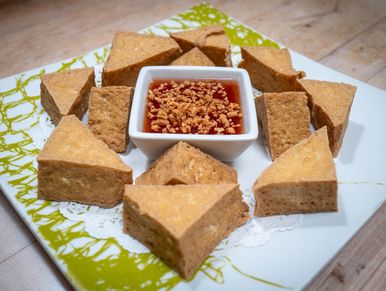 Deep-fried Tofu served with Plum Sauce topped with Ground Peanut.