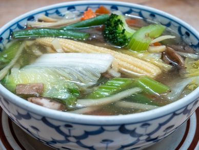 (choice of no meat, chicken, pork, tofu, beef, squid or shrimp)