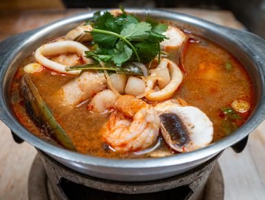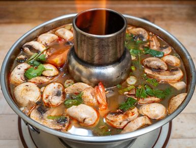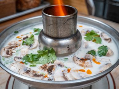 Spicy & Sour Soup with Coconut Milk, Galanga, Lemon Grass and Mushrooms.