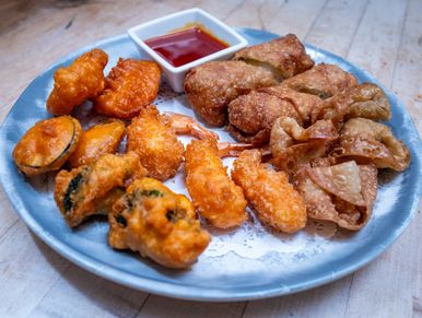 Deep-fried Shrimp, Egg Rolls, Wontons and Vegetables served with Sweet & Sour Sauce.