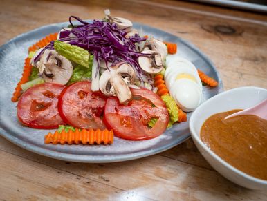 Mixed Vegetables and Egg with Peanut Sauce Dressing.