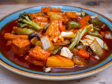 With deep-fried Vegetables served with Sweet & Sour Sauce.