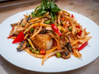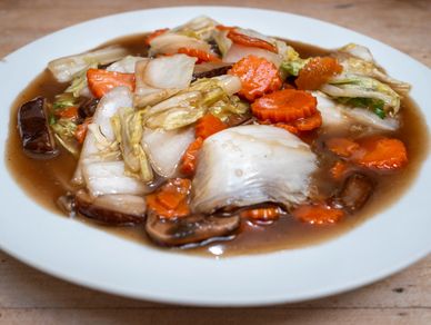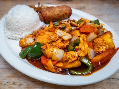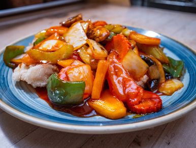 Deep-fried (or Steamed) Fish Fillet topped with Onion, Bell Pepper, Pineapple and Tomatoes in Sweet & Sour Sauce.
