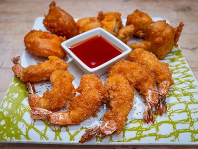 Deep-fried Shrimp wrapped with Egg Roll Skin served with Sweet & Sour Sauce.