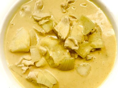 Coconut Milk Curry with Onion, Peanuts, Carrots and Potatoes.