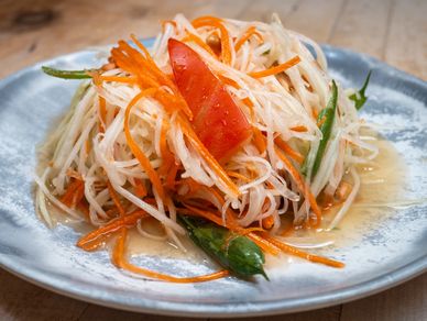 With Carrot, Tomato, Peanut and Dried Shrimp in Spicy Lime Dressing.